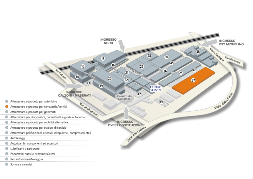 La nuova area, ampia e moderna, permetterà di riorganizzare e razionalizzare ulteriormente la manifestazione dal punto di vista merceologico, riunificando alcuni settori e dando possibilità di espansione ad altri, in cui la richiesta è in crescita, come nel caso di Carrozzeria e Diagnosi.